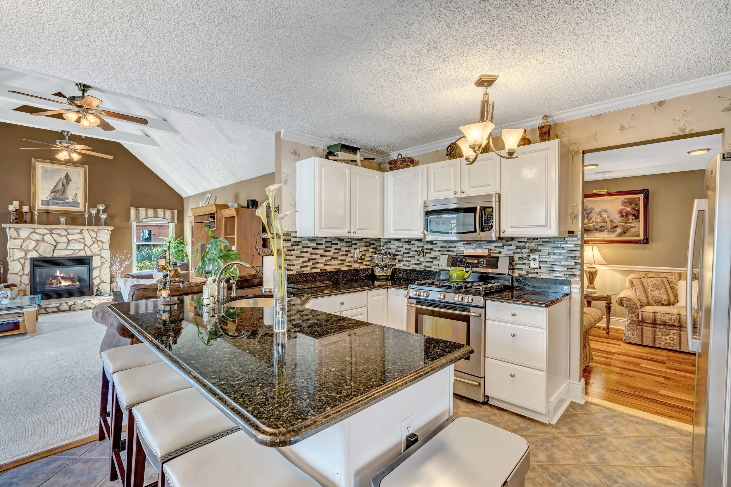 The home features an extended family room with cathedral ceiling and gas fireplace off the kitchen, w/ a slider onto a spacious backyard living space, gazebo, and outdoor BBQ station.